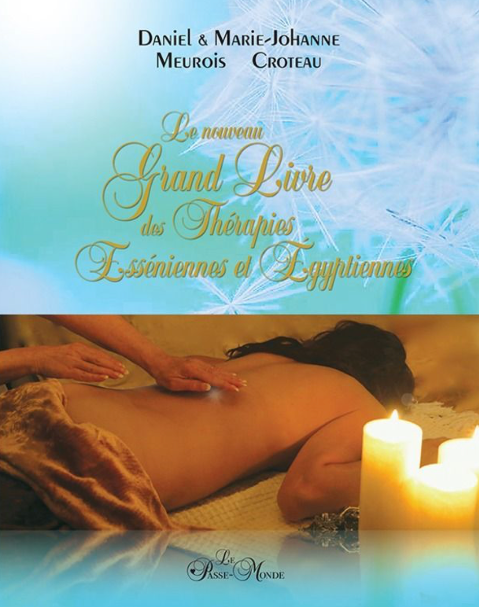 "Le nouveau Grand Livre des Thérapies Esséniennes et Egyptiennes", de Marie-Johanne Croteau-Meurois et Daniel Meurois. L'ouvrage de référence, gage de sérieux et de technicité, sur lequel je me suis appuyé tout au long de ma formation et qui aujourd'hui encore est un pilier de ma pratique. Cet outil de travail est incontournable pour tout professionnel sérieux vous proposant les Thérapies Esséniennes.
